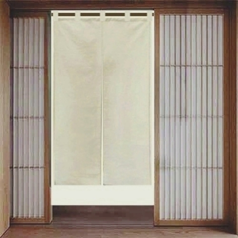 Màn rèm noren Nhật loại vải bố cotton màu kem không in hình chính giữa xẻ đôi