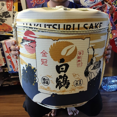 Thùng rượu sake Nhật mẫu dùng trang trí nội thất, phù hợp trang trí các nhà hàng Nhật, các siêu thị cửa hàng kinh doanh phong cách Nhật... Chất liệu bên trong xốp tạo hình, bên ngoài bọc mành chiếu được in hoạ tiết tên theo các thương hiệu rượu sake Nhật Dây thắt buột hoàn thiện, nút thắt chắc chắn